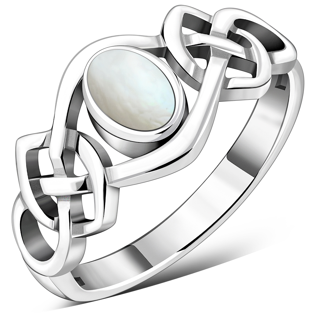 Jewelry as: Mother of Pearl Sea Shell Celtic Silver Ring, Mother of Pearl