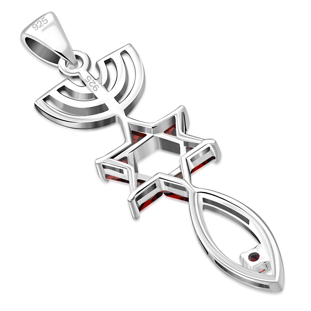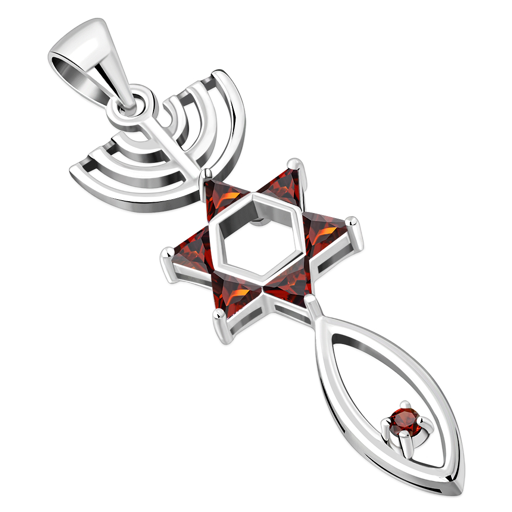 Theme: Garnet CZ Messianic Seal of Jerusalem Pendant.