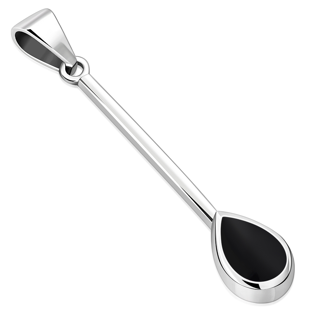 Black Onyx Long Drop Pear Shaped Sterling Silver Pendant