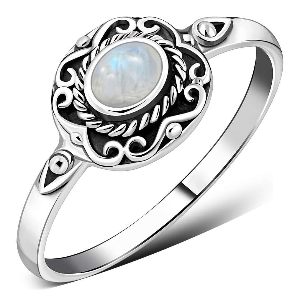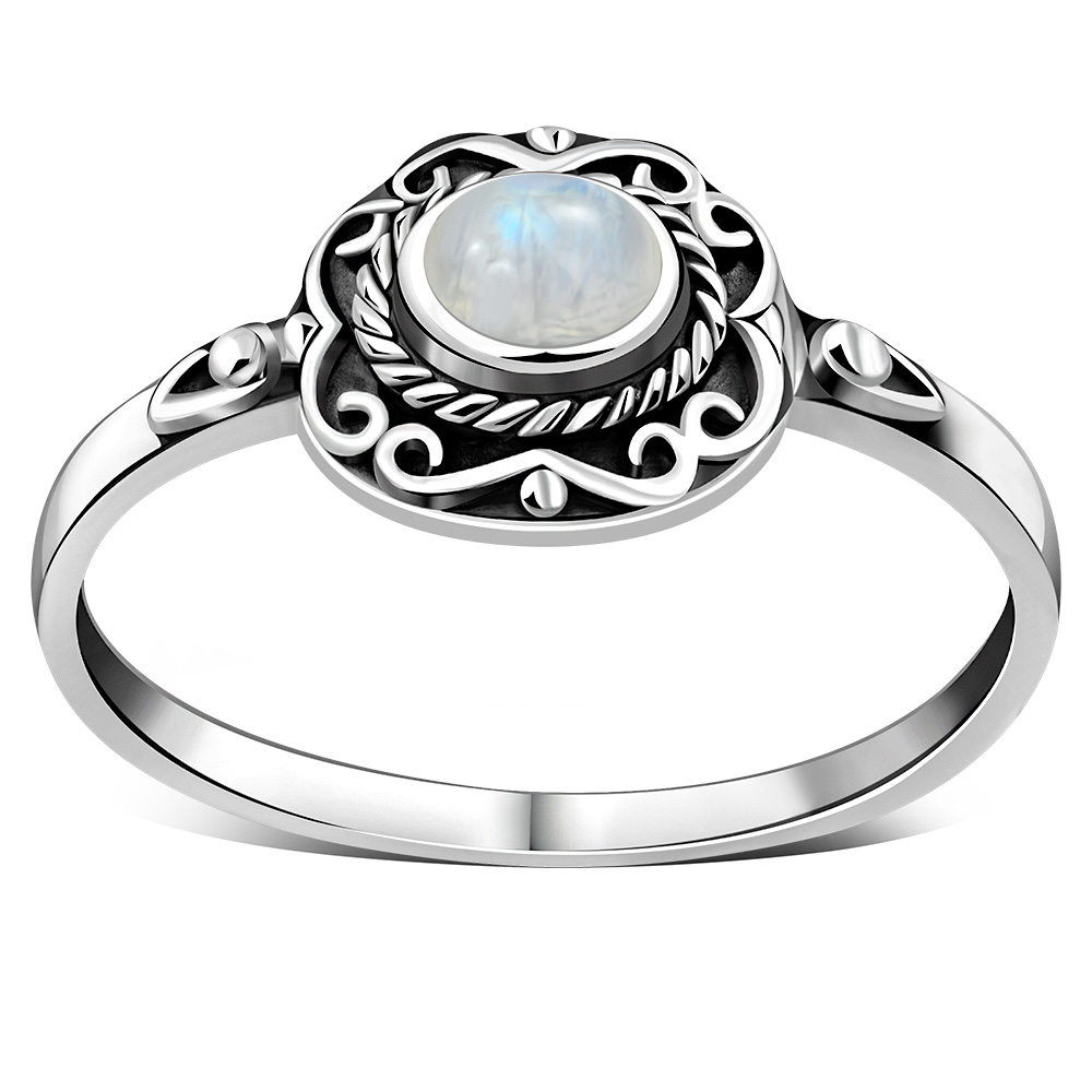 Ethnic Design Rainbow Moon Stone Silver Ring.