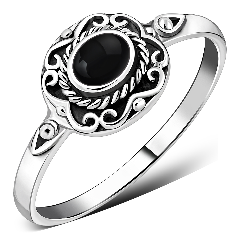 Theme: Ethnic Style Black Onyx Silver Ring.