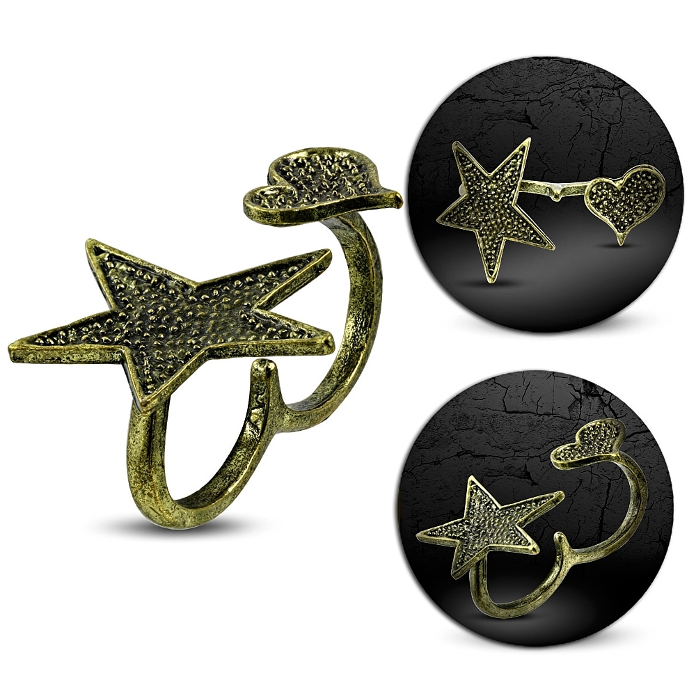 Fashion Love Heart Star Stretchable Two Finger Double Knuckle Ring - FRA184