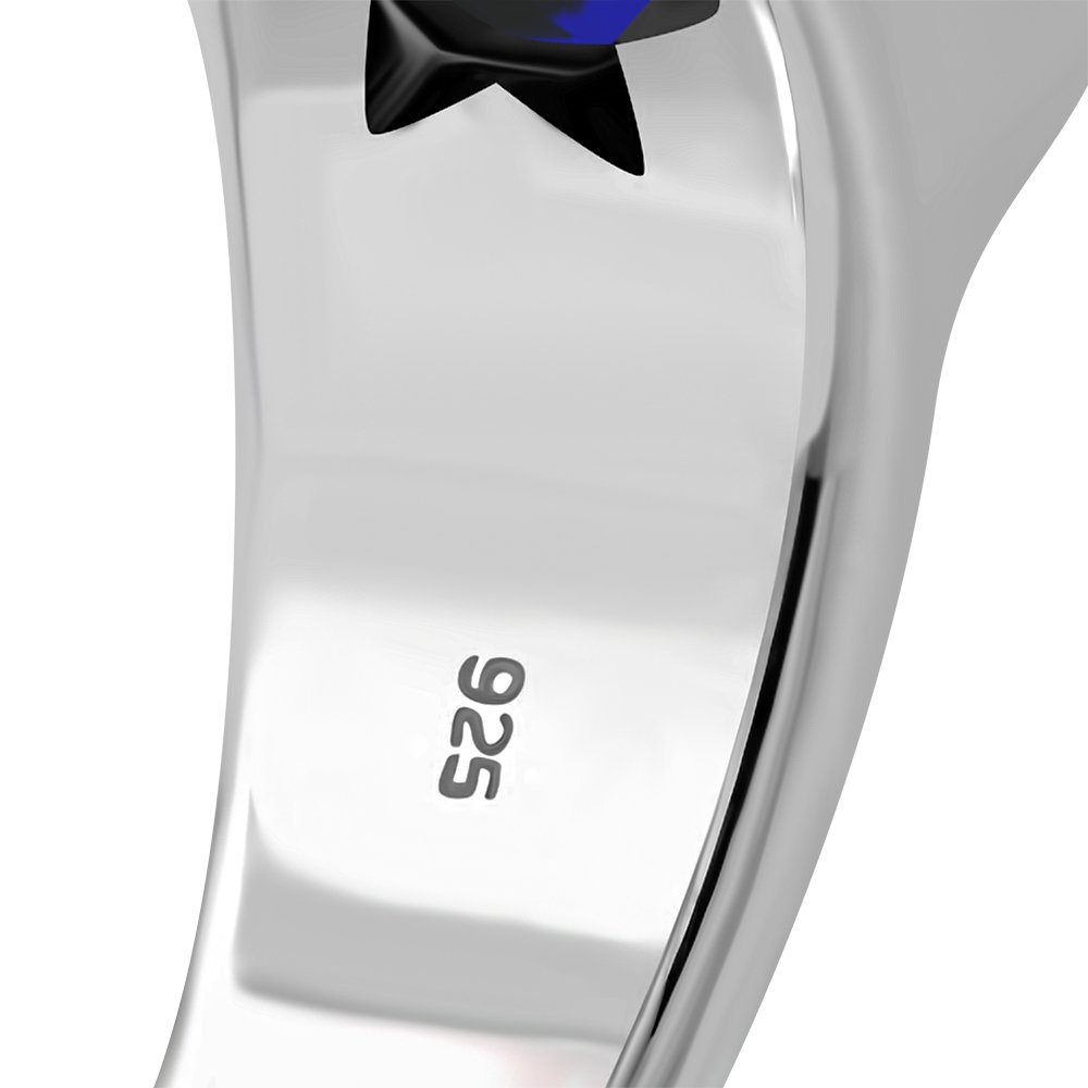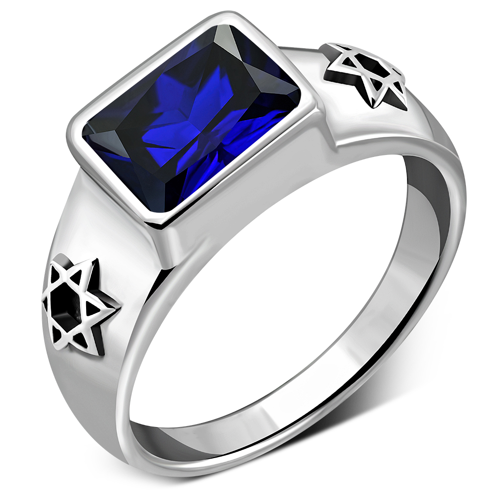 Star David Men's Silver Ring w/ Blue Sapphire Corundum.