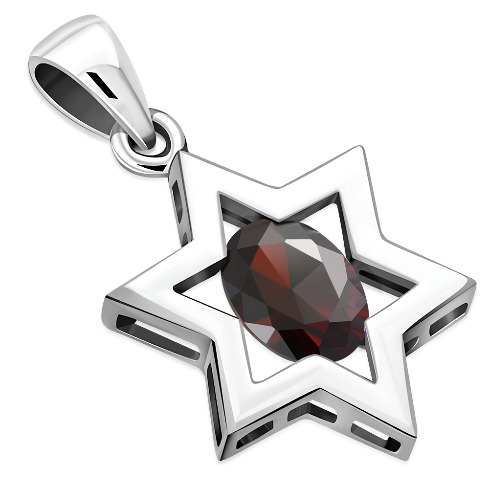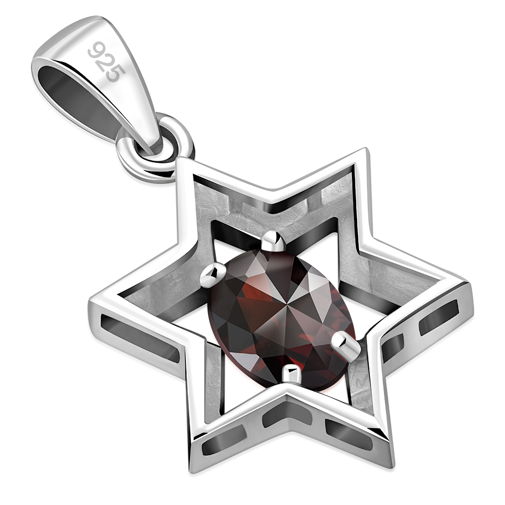 Theme: Garnet CZ Star of David Silver Pendant.