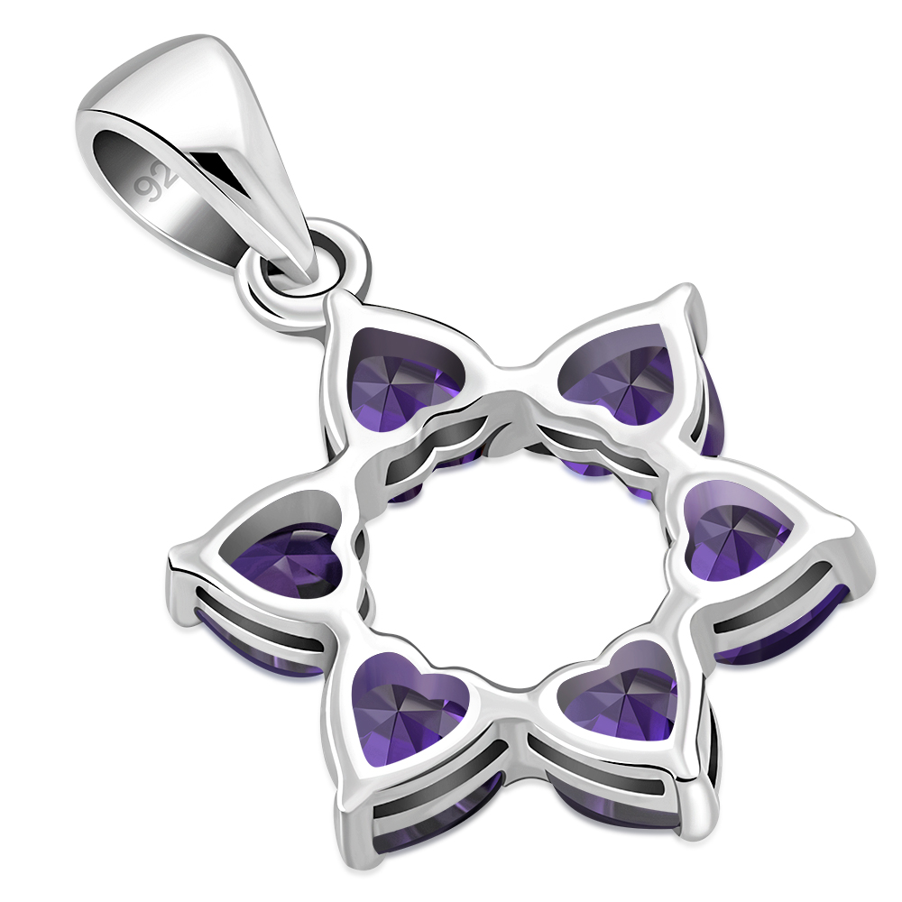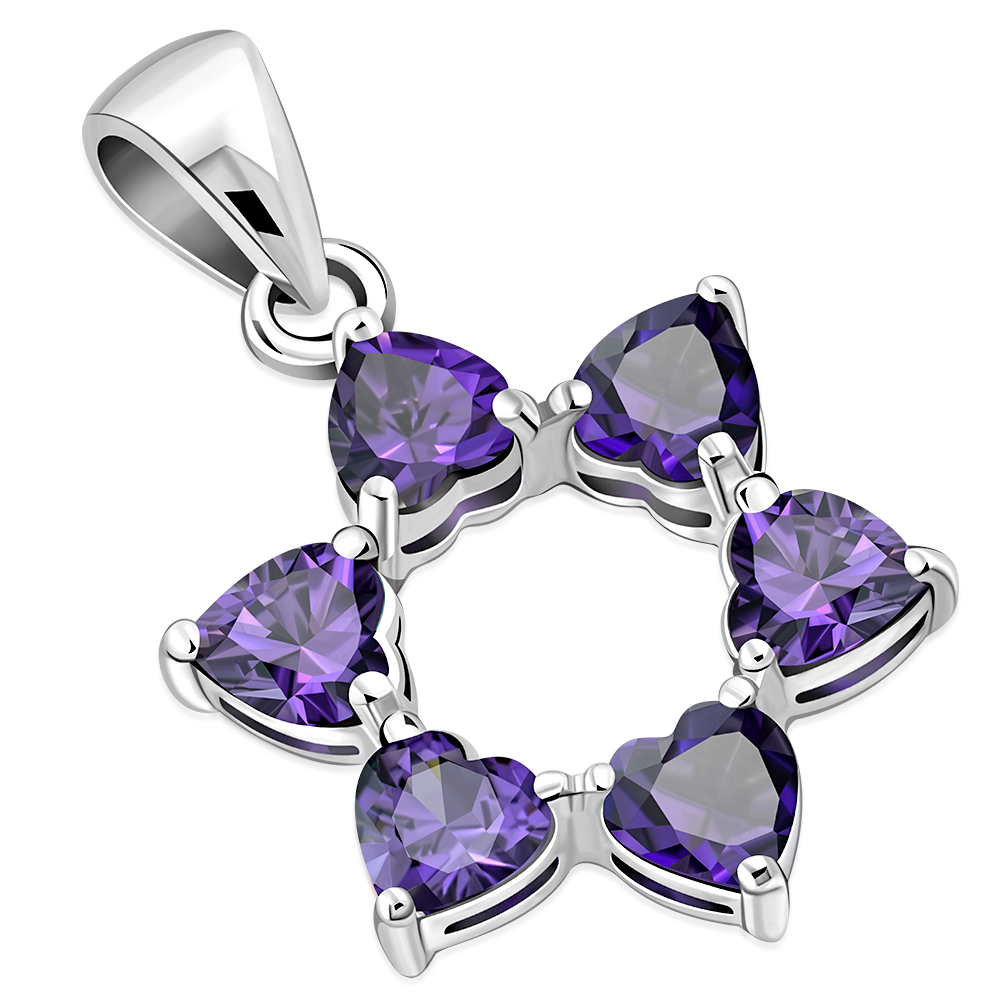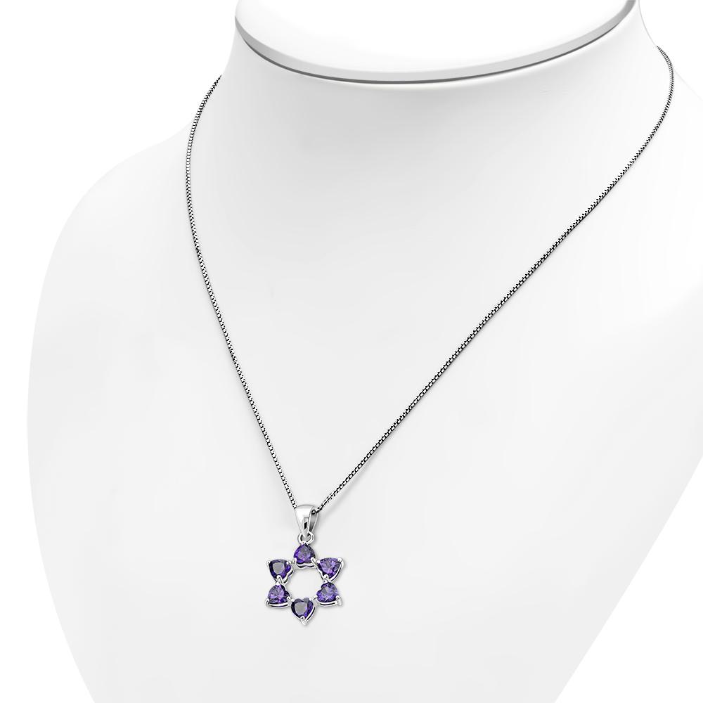 Theme: Heart Shape Purple CZ Star David Silver Pendant.