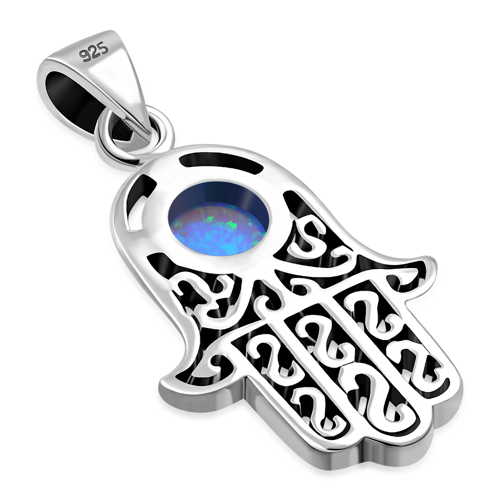 Theme: Synthetic Opal Hamsa Silver Pendant.