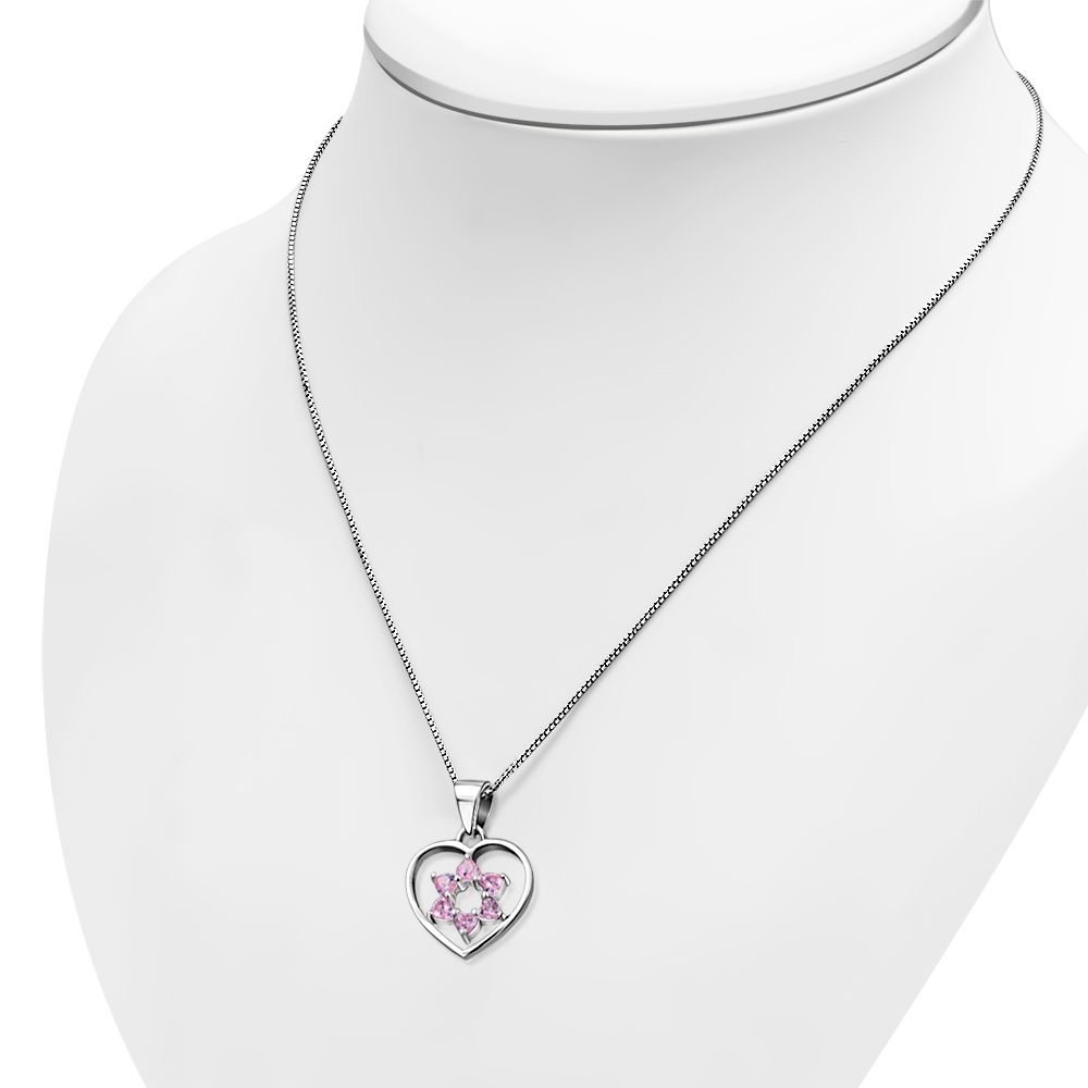 Theme: Pink CZ Heart Shape Star David Silver Pendant.