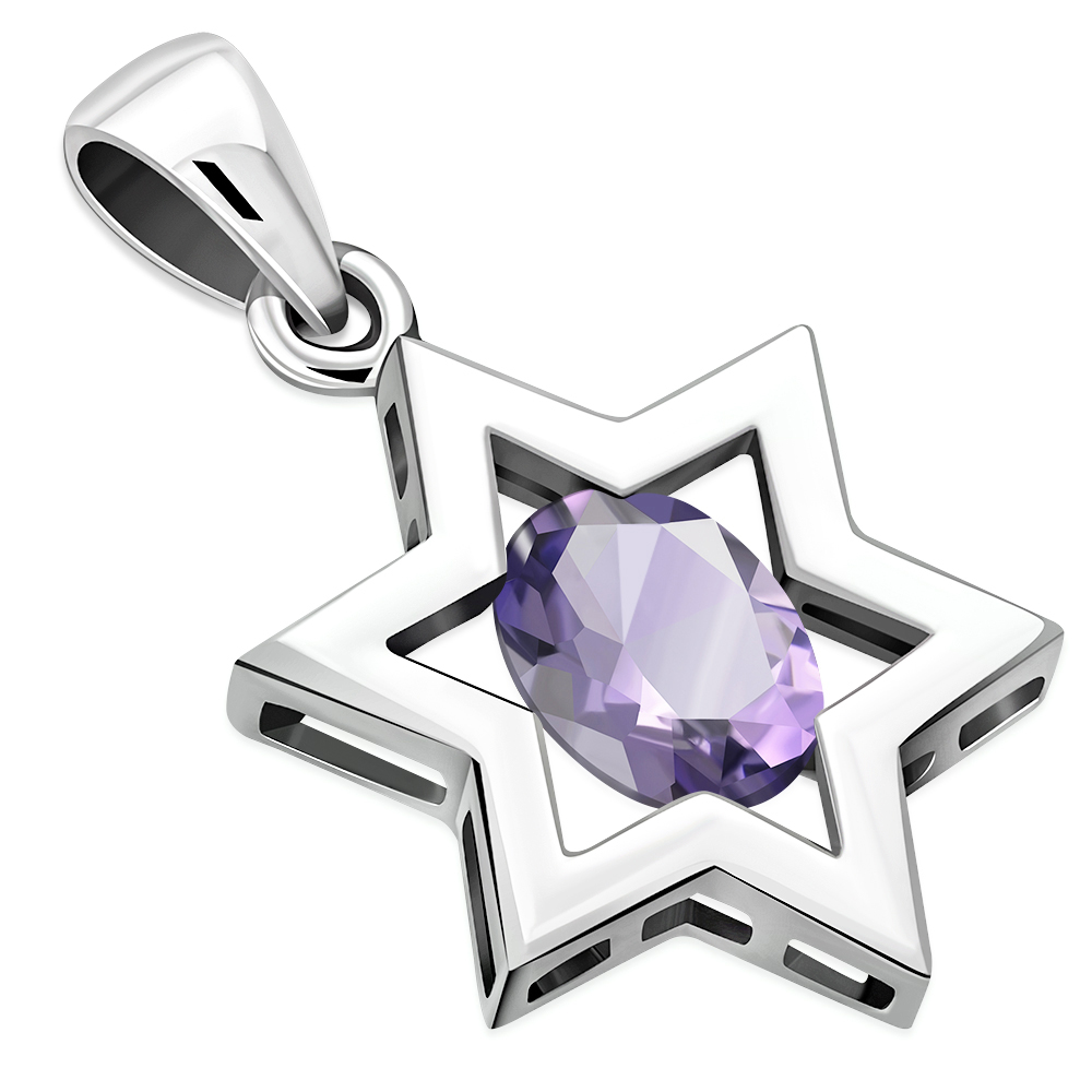 Theme: Star of David Silver Pendant set w/ Amethyst Stone.