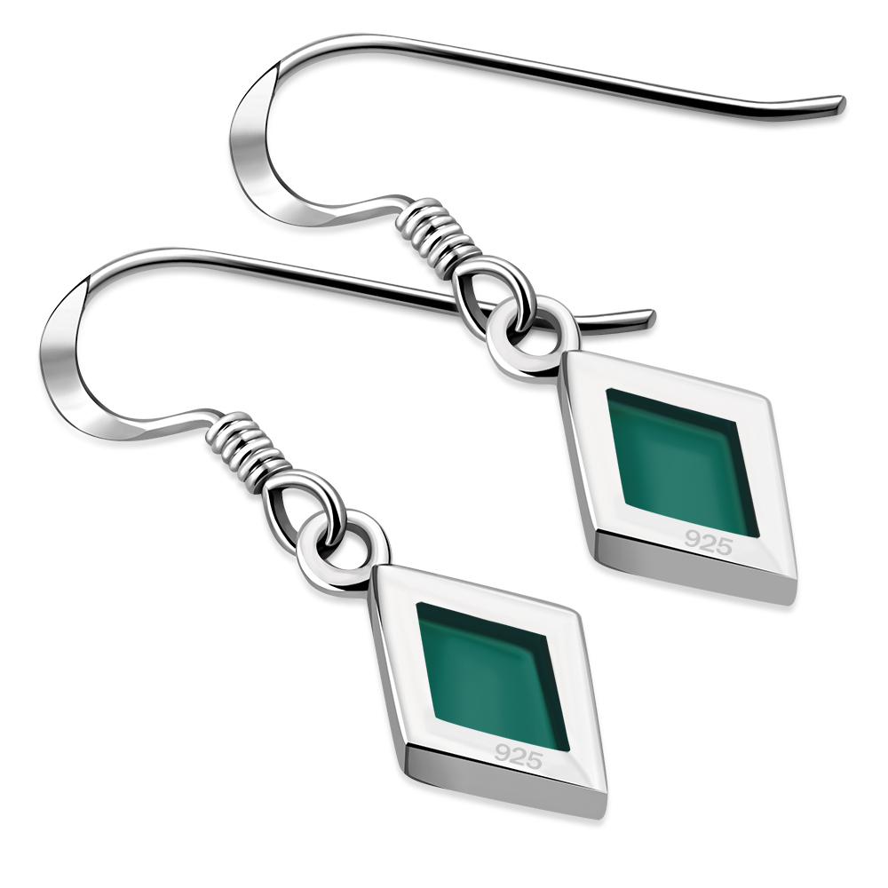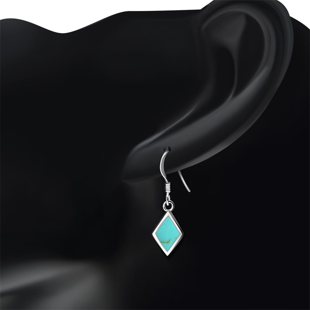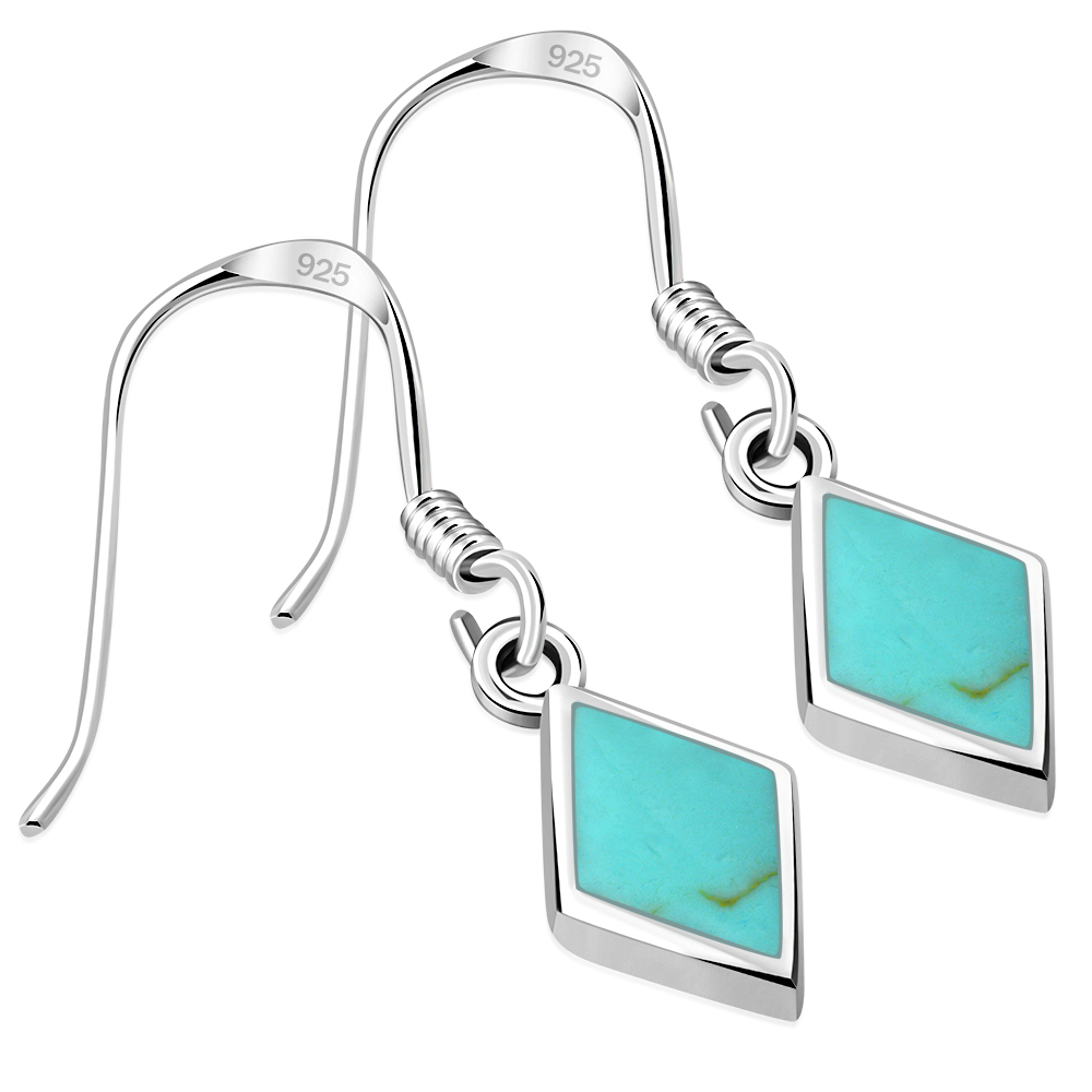 Theme: Turquoise Rhombus Shape Silver Earrings.