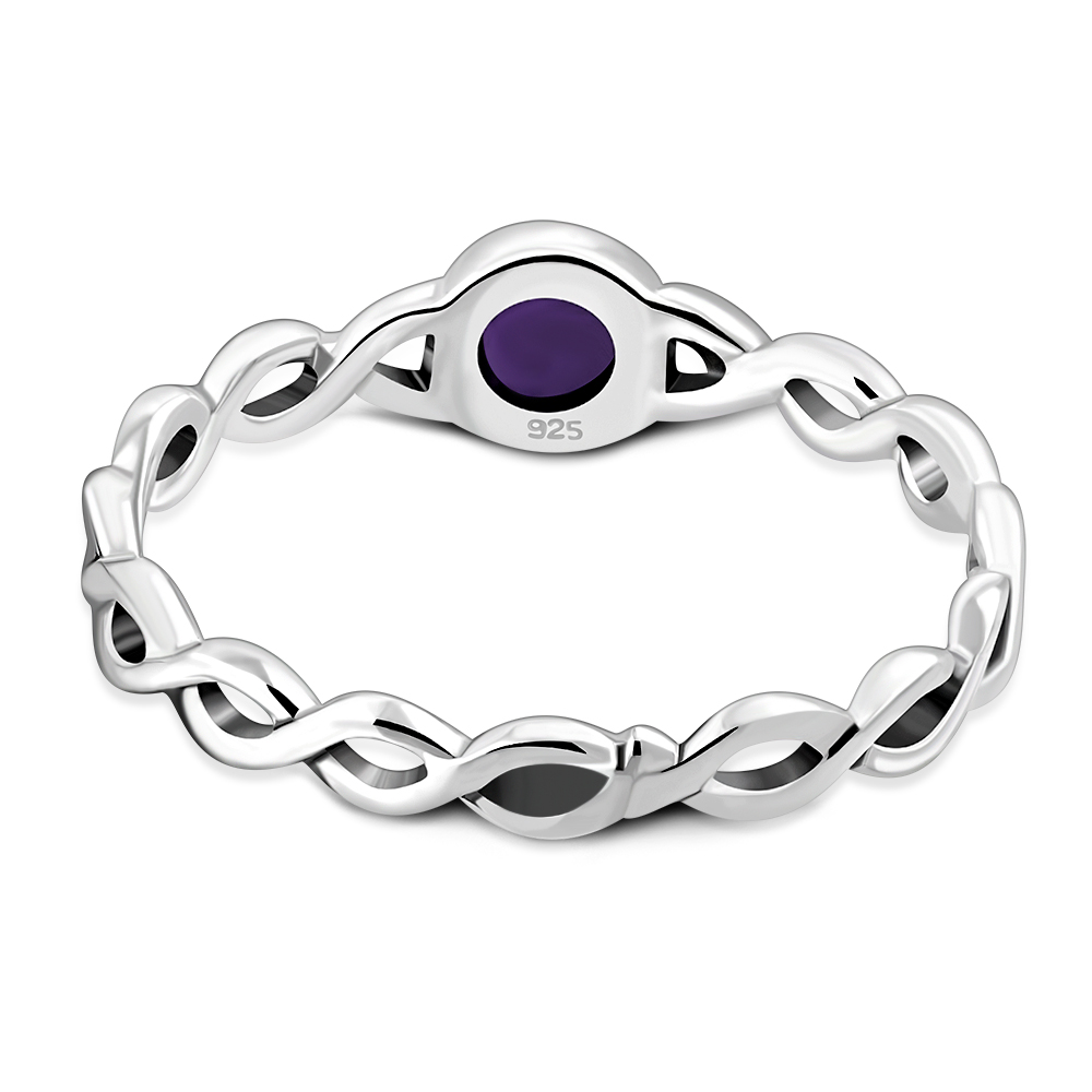 Amethyst Stone Infinity Knot Band Silver Ring
