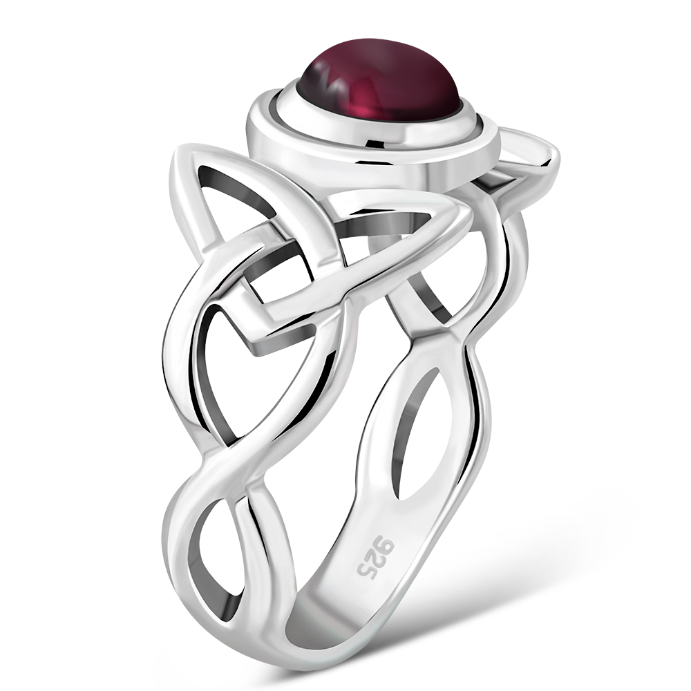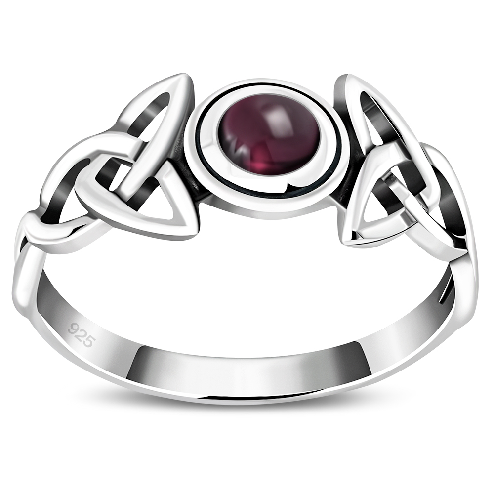 Theme: Celtic Trinity Knot Garnet Silver Ring.