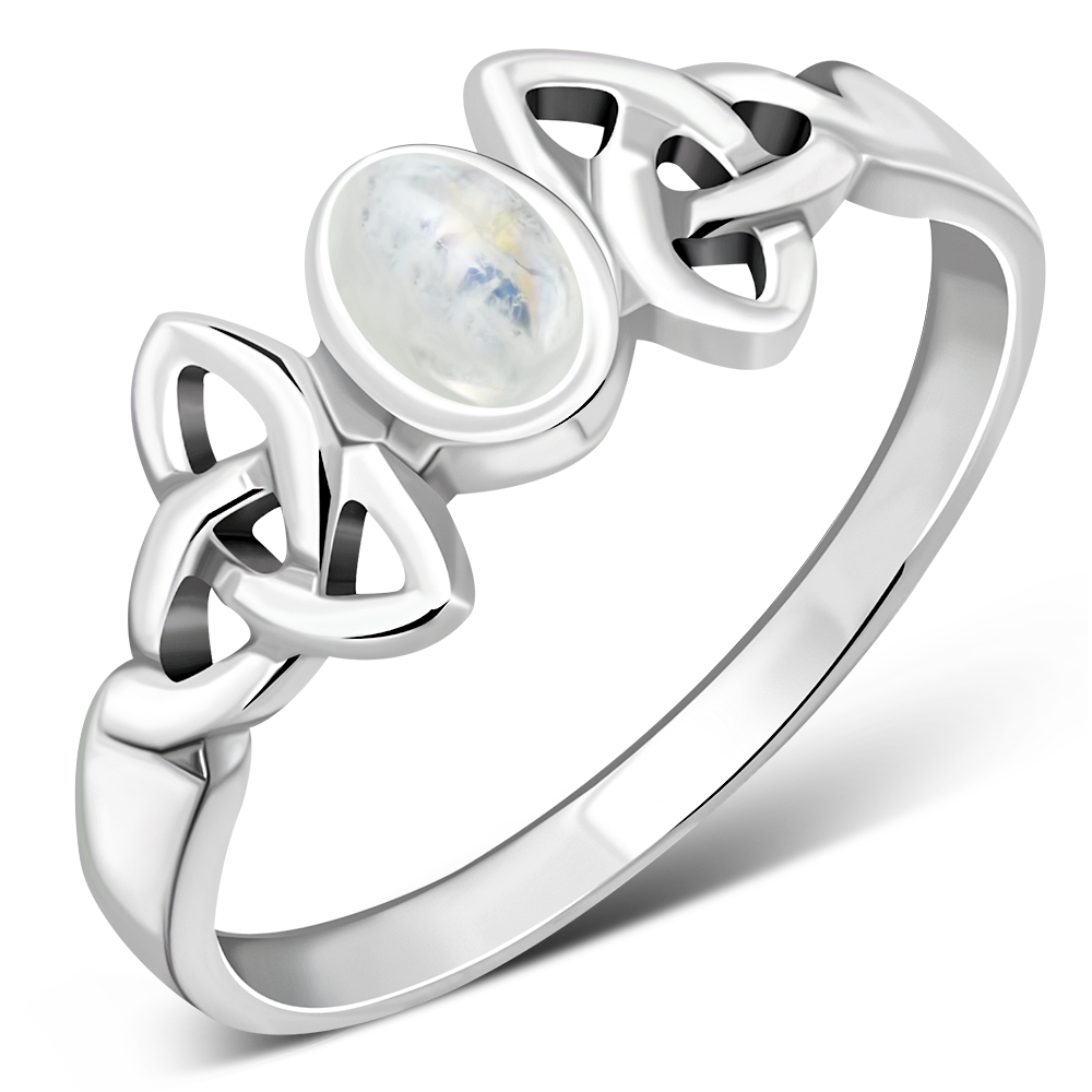Celtic Trinity Knot Rainbow Moonstone Silver Ring