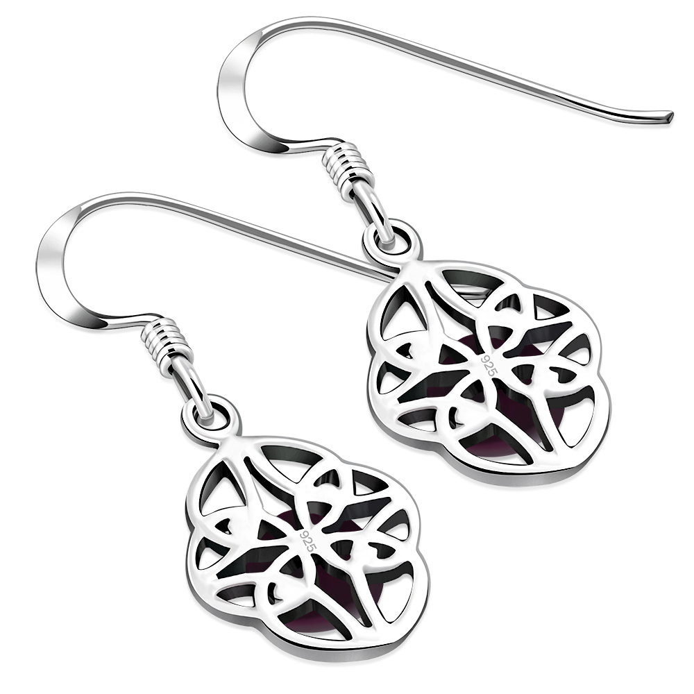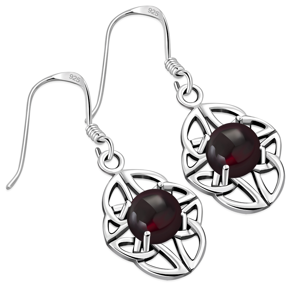 Theme: Garnet Stone Celtic Knot Silver Earrings.