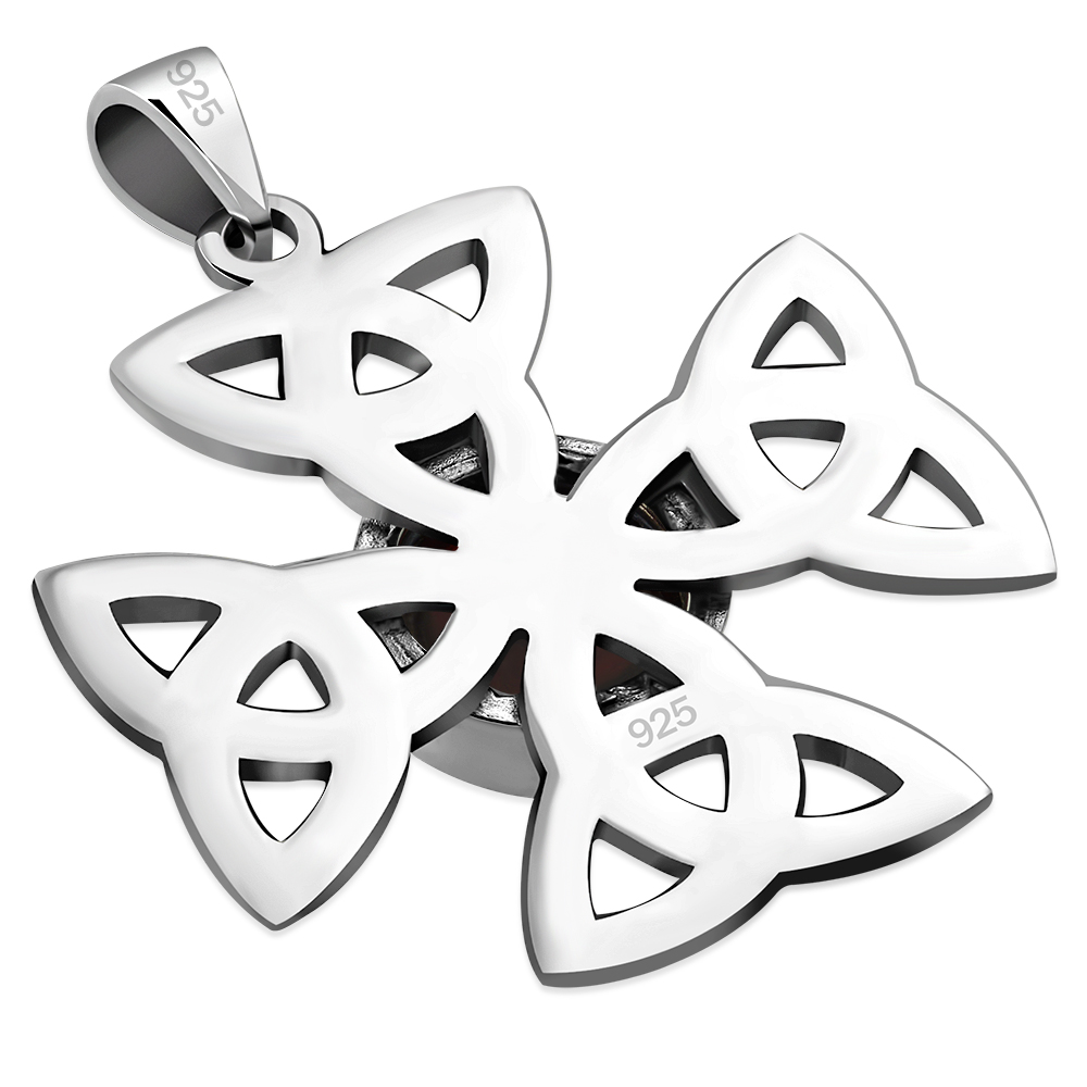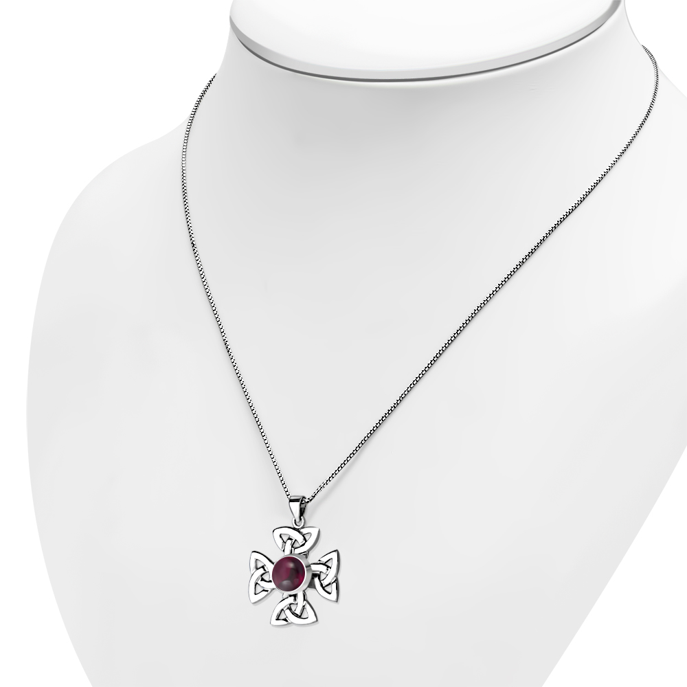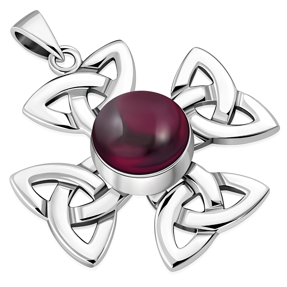 Theme: Garnet Celtic Trinity Cross Silver Pendant.