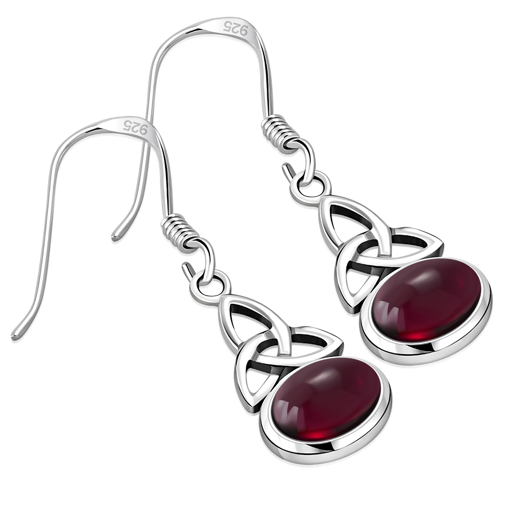 Theme: Garnet Celtic Trinity Knot Silver Earrings.