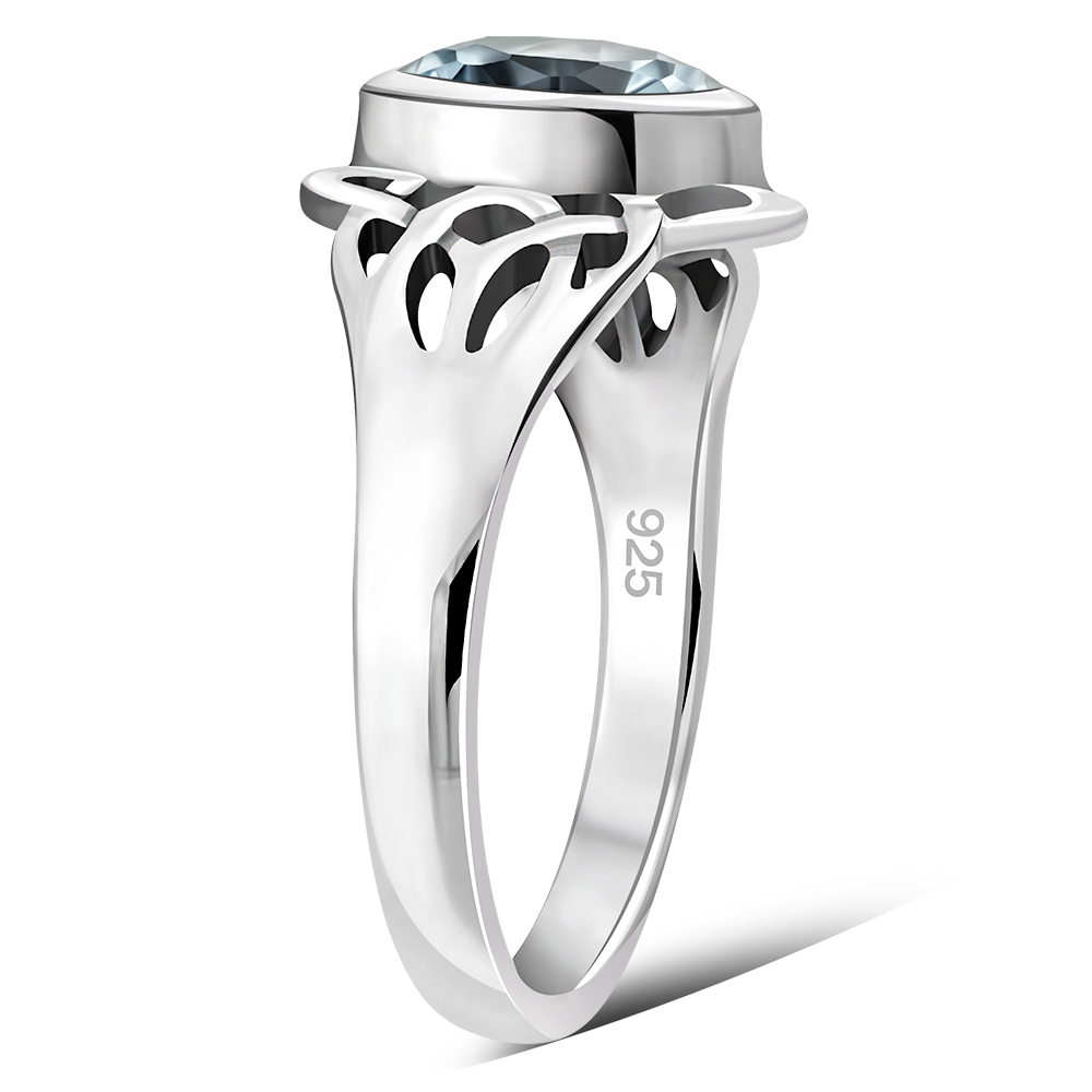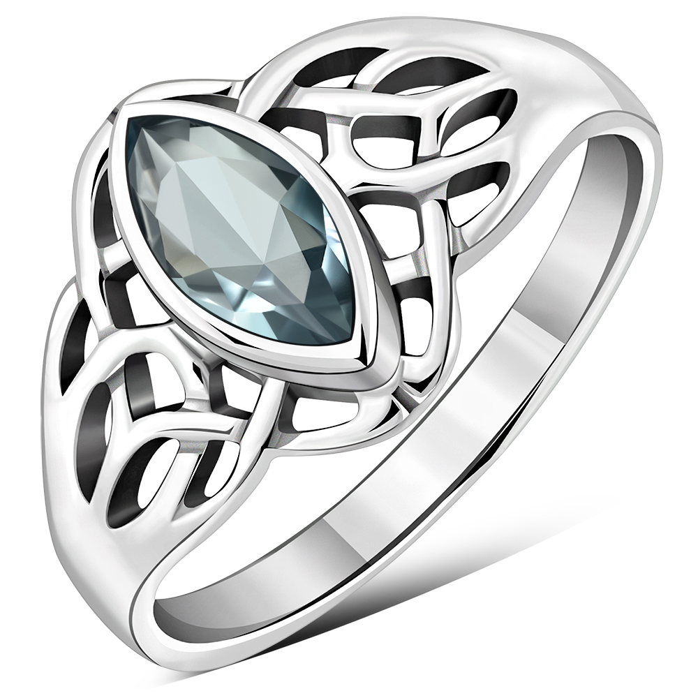Celtic Knot Blue Topaz CZ Silver Ring.