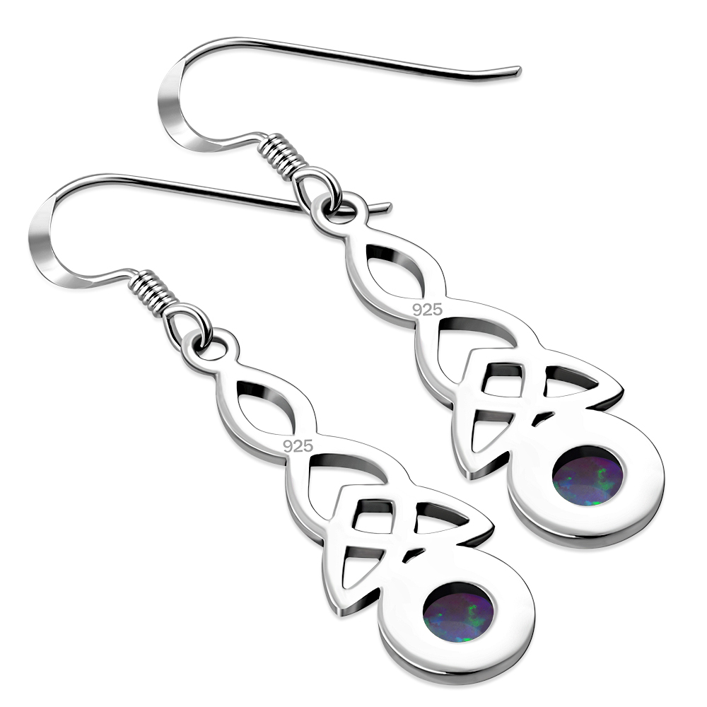 Theme: Long Synthetic Opal Trinity Knot Silver Earrings.