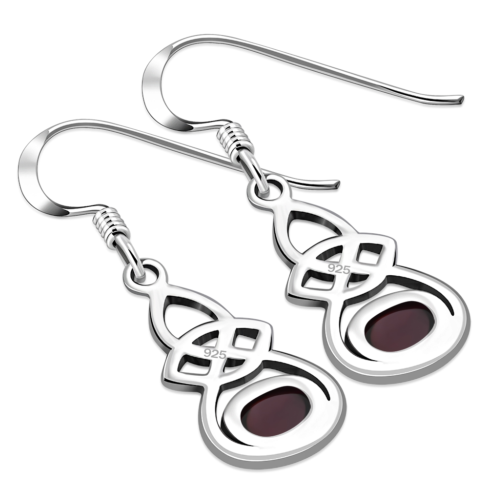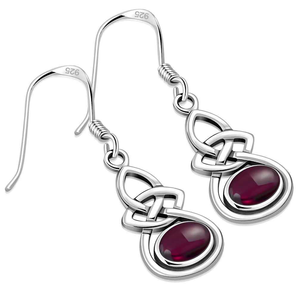 Theme: Oval Garnet Celtic Knot Silver Earrings.