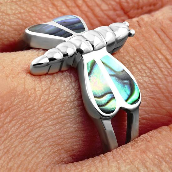 Abalone Shell Dragonfly Silver Ring