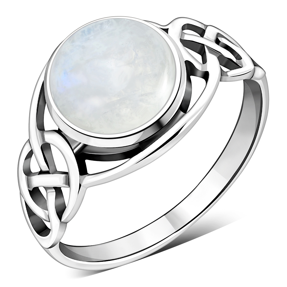 Rainbow Moonstone Celtic Knot Silver Ring