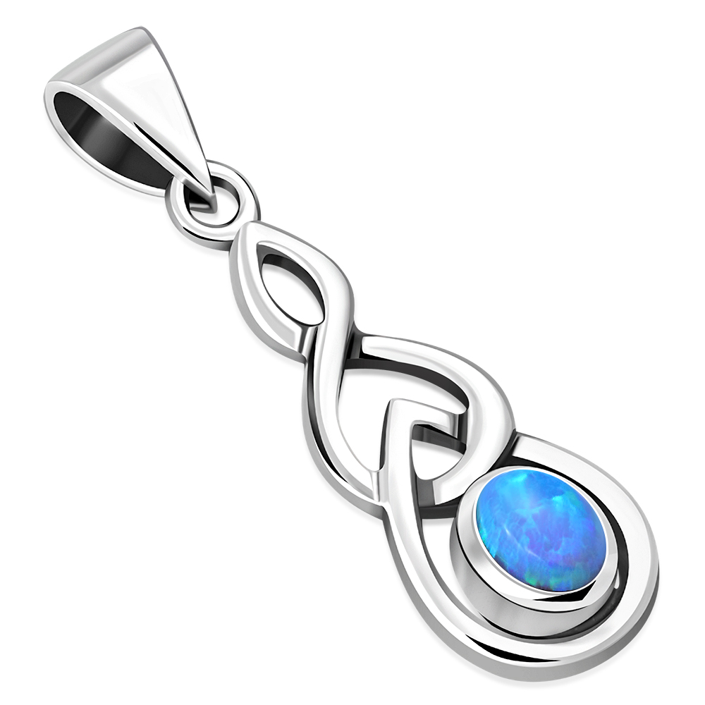 Silver Celtic Pendant set w/ Synthetic Azure Opal